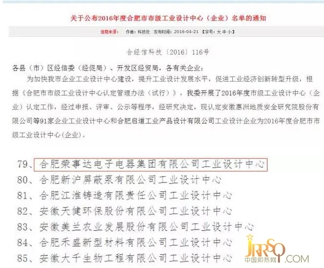 本次被评定为2016年度合肥市市级工业设计中心(企业),是对荣事达电子电器工业设计水平的肯定。展望未来,荣事达电子电器将继续加快技术设计中心创新能力的建设,研发出更多适合消费者使用的创新产品,提升中国品牌工业设计发展水平,促进产业经济转型升级。