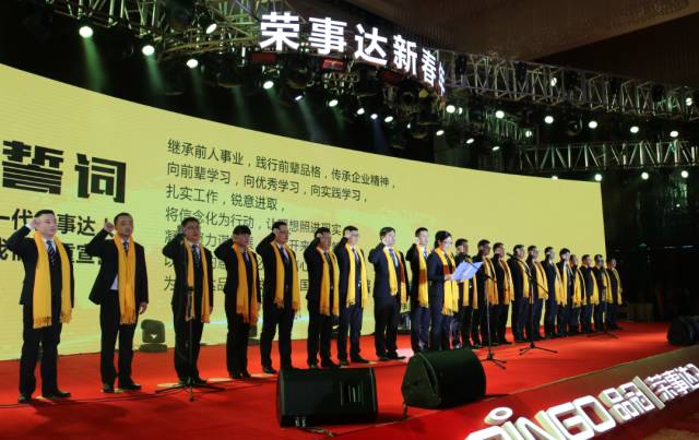年会现场,除了优秀员工、销售冠军、优秀团队、优秀管理干部、优秀经销商、供应商颁奖的必备环节外,还增添了许多感人的瞬间:新一代荣事达接班人为品牌功勋前辈奉上感恩杯,感怀老一辈奋斗者的奉献;现场成立百万爱心公益基金,对遭遇生活变故或家庭困难的荣事达员工进行无偿资助,爱心帮扶;新一代荣事达现场宣誓,继承前人视野,践行前辈品格,传承企业精神,为品牌发展,贡献青春和力量!
