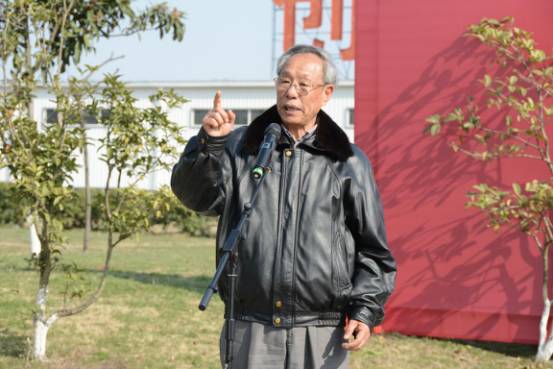 ↑荣事达第一代领导人陈荣珍在奠基仪式现场致辞